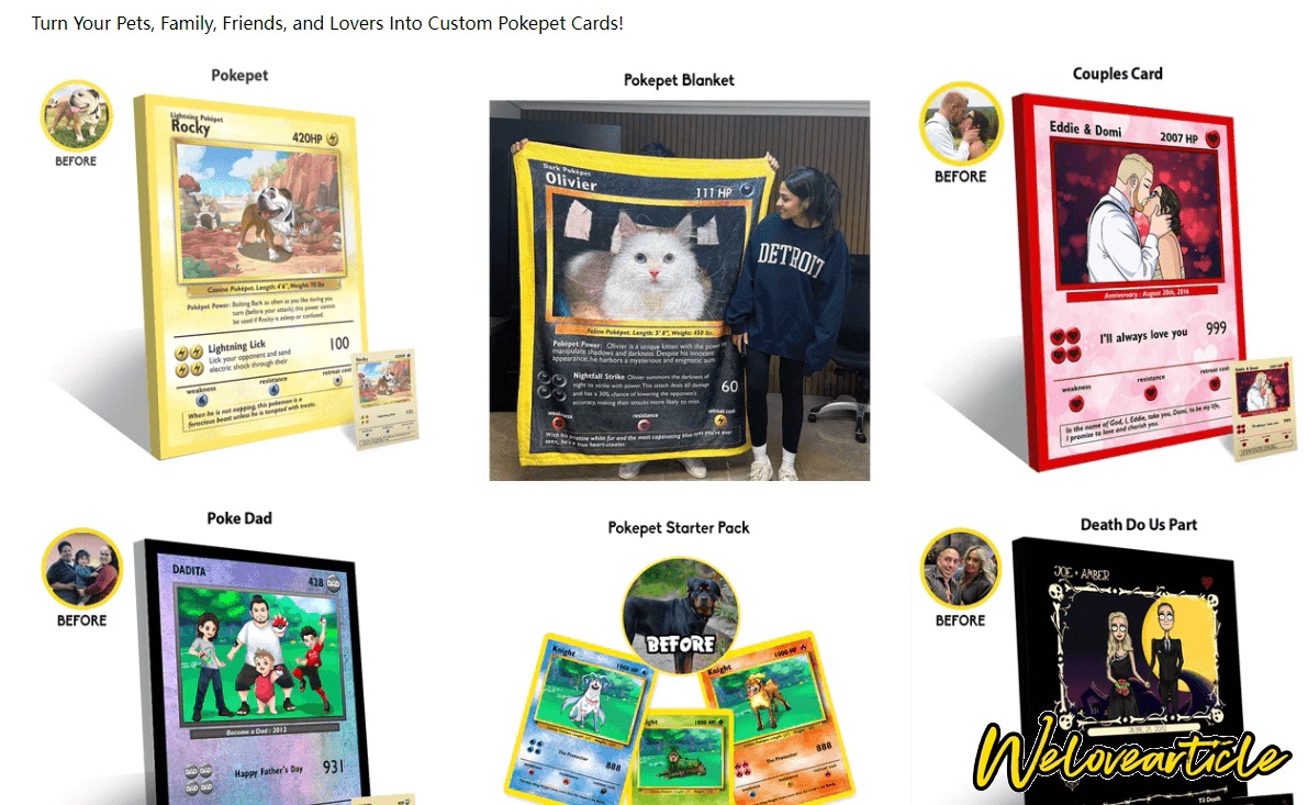 pokepetshop宠物用品一家做宠物卡片定制的公司,制作巨大的宠物卡牌和海报,有几个艺术家专门来设计,价格范围大概在50-100美元,相当可以的创意!