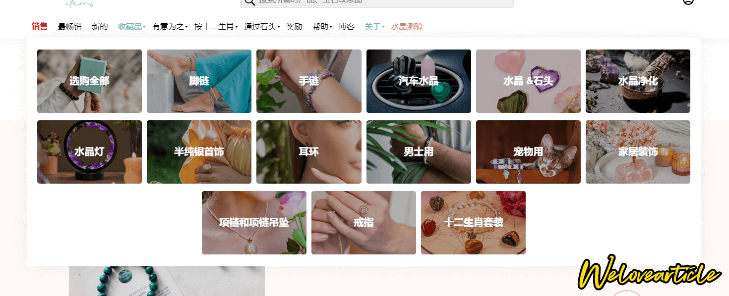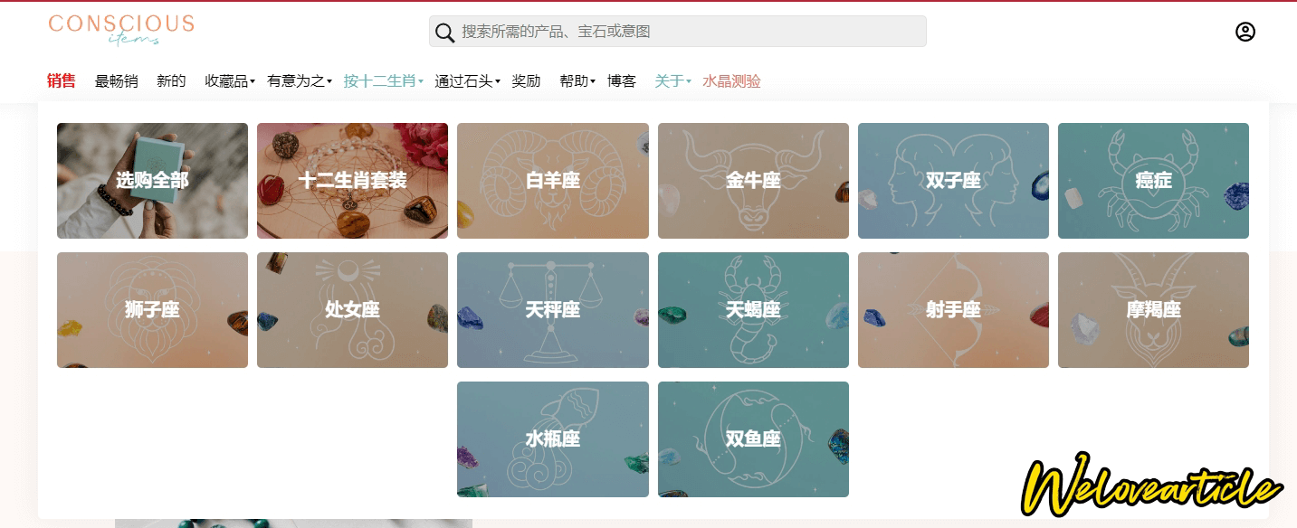 consciousitems水晶饰品跨境 水晶 专门售卖水晶饰品的站点,给水晶视频赋予了不同的含义,增加附加值。
