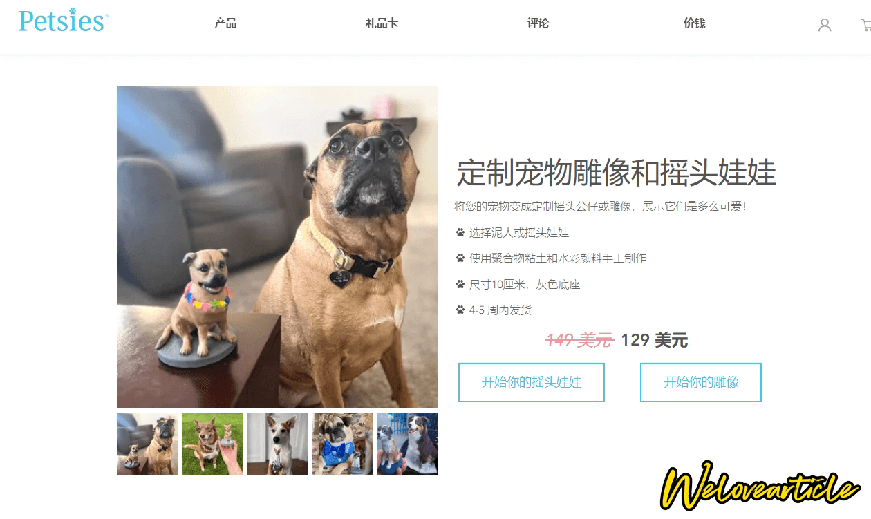 mypetsies宠物定制产品专门售卖宠物定制产品,比如宠物毛毡,宠物球套,雕像、磁铁等定制品,价格大概在100-400美金之间