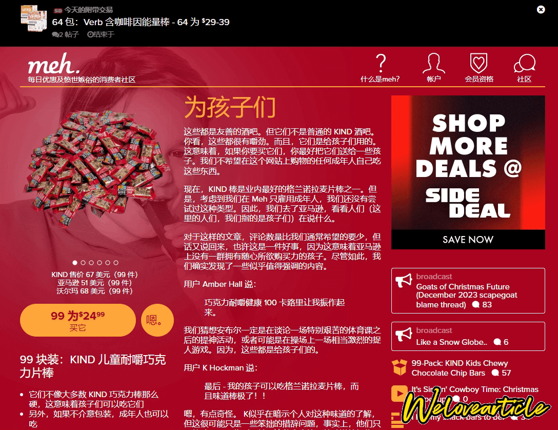 meh每日特价每日优惠是我们在线零售的标志性风格。 Meh 会出售单件商品,并大幅打折,直至东部时间中午 12 点钟声敲响。单击"购买"按钮即可购买您甚至不知道自己想要的商品的超值优惠,或者单击"Meh"按钮以获得更令人满意的购物体验:放弃。根据需要重复您生命中的每一天。
