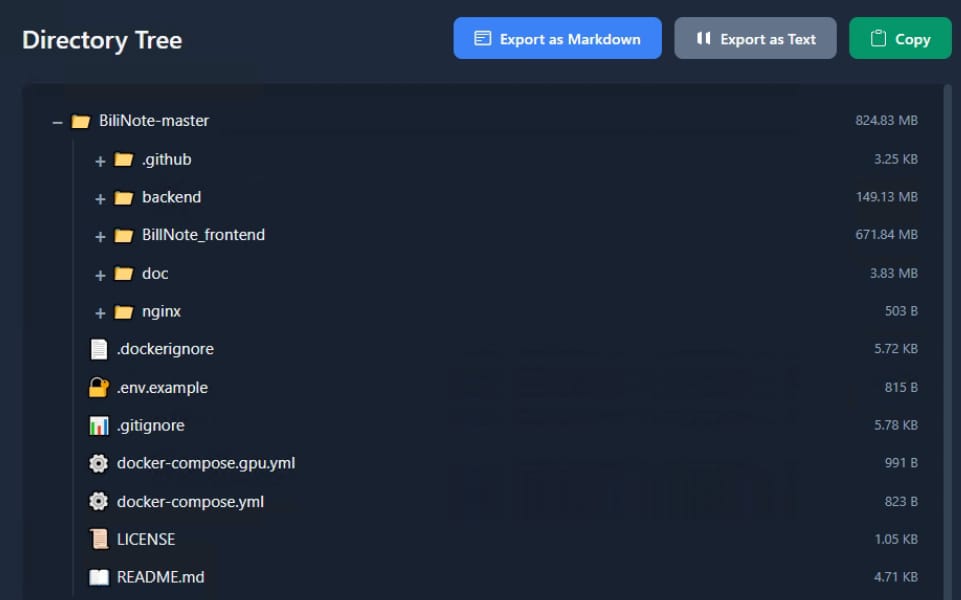 Directory Tree Builder 是一款免费的桌面应用程序,可以帮助您快速生成文件夹的目录树结构,并导出为 Markdown 或纯文本格式。