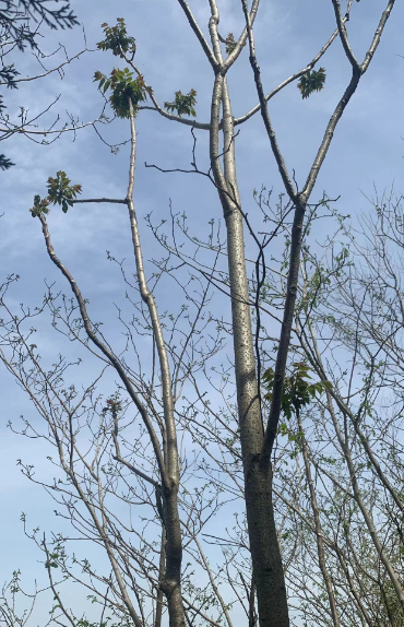 可以全部砍掉,坟头上可以长草本植物,但不要长树木,今天锯树锯了一个小时,才搞了10多根,不同种类的树比较多,香椿太粗了,耗费了不少时间。
