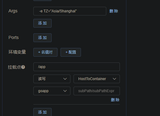 - 再次进入kuboard面板配置gocron的挂载文件夹,并设置为gocron的路径(这个会覆盖gocron的路径,所以持久化了)