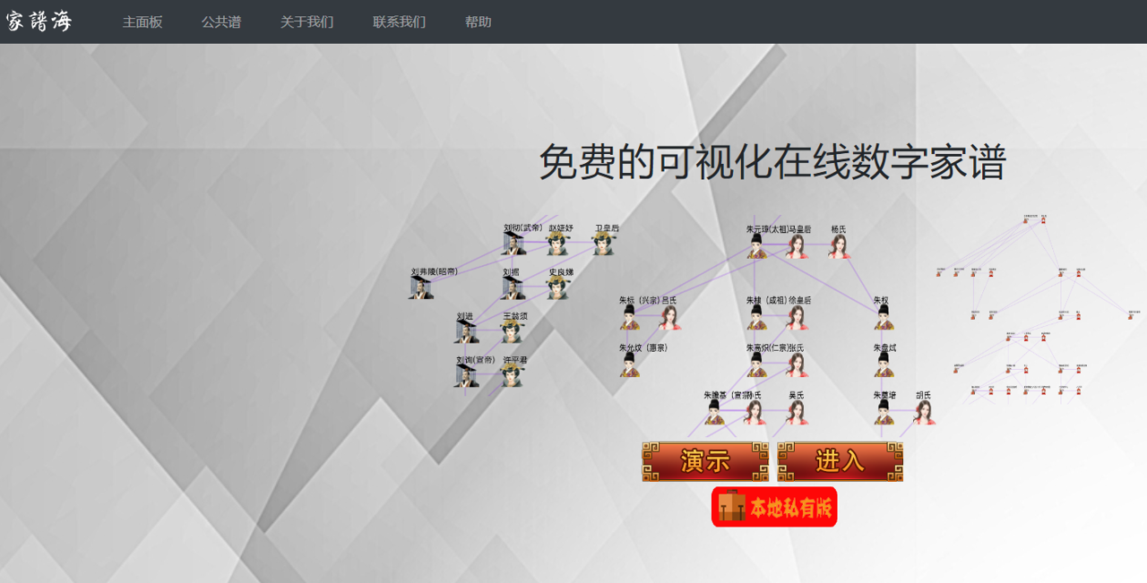 网站虽然比较老了,但是做出来了一个可用的软件,可以可视化输出家族关系。但我觉得这种私有化的软件更适合做成客户端形式的,直接一次性收费就好了,做成多语言版本的,面向海外收费。