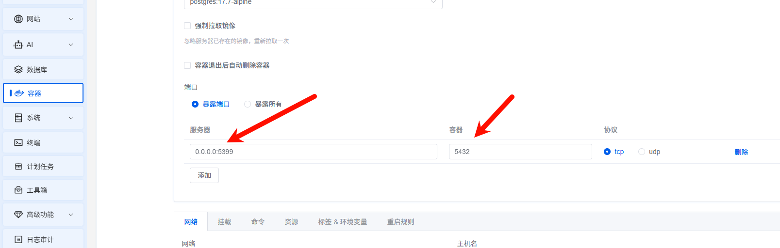 1Panel PostgreSQL 端口映射