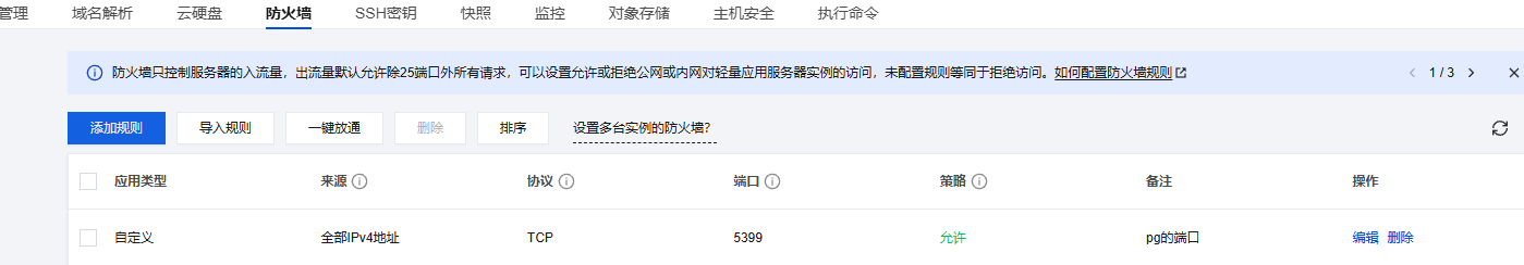 打开腾讯云的防火墙开放端口