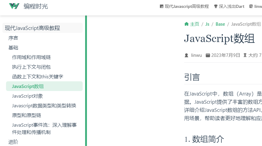 现代JS教程,编程时光,在线文档,JavaScript数组,高级教程